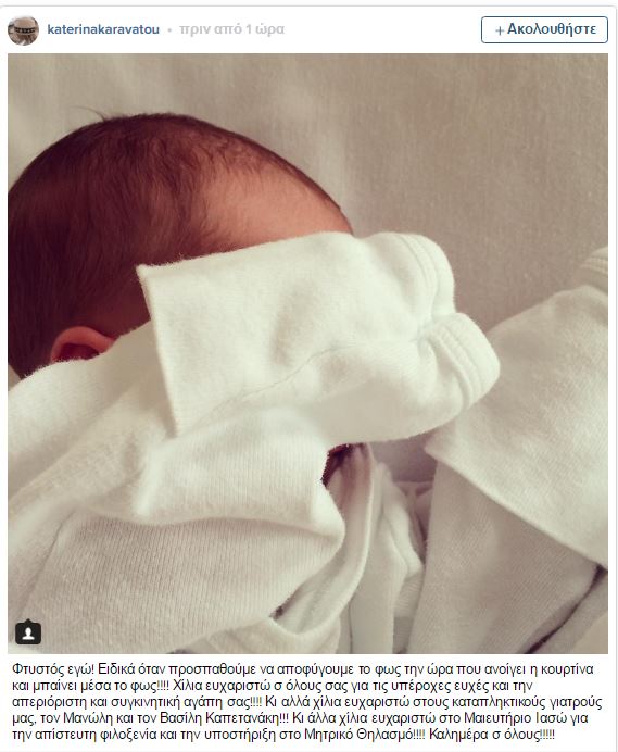 Η Κατερίνα Καραβάτου αποφάσισε να μας δείξει για πρώτη φορά το μωρό της στο instagram, κάνοντας χιούμορ αλλά κι ευχαριστώντας τους γιατρούς της.