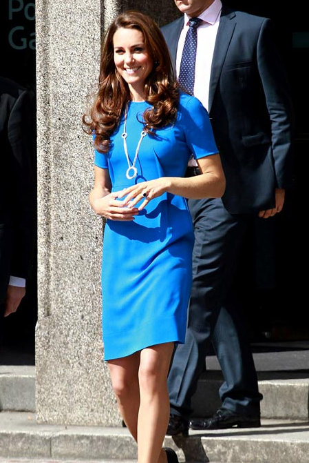 Με ένα μπλε φόρεμα, της σχεδιάστριας Stella ΜcCartney, που σχεδίασε και τις στολές της βρετανικής ολυμπιακής ομάδας και με ένα χρυσό “γεμάτο” κόσμημα στο λαιμό, η Δούκισσα έκανε μια άκρως “ολυμπιακή” εμφάνιση σε έκθεση φωτογραφίας για τους Ολυμπιακούς Αγώνες.
