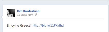 H Κιμ Καρντάσιαν απολαμβάνει τις ομορφιές της Ελλάδας και το “διατυμπανίζει” στον προσωπικό της λογαριασμό στο facebook.