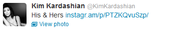 His&Hers γράφει στο twitter της η Kim Kardashian. “Τα δικά του και τα δικά της”, δηλαδή. Και εννοεί τα ψηλοτάλουνα πέδιλά της και τα αθλητικά παπούτσια του καλού της Kanye West.