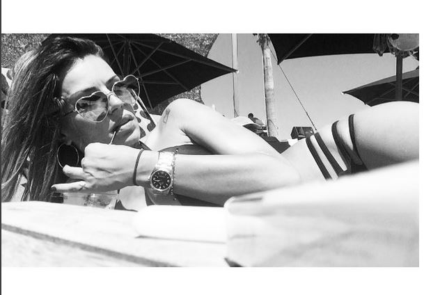 Ξαπλωμένη στην παραλία και χαλαρή, η Χριστίνα Κολέτσα πίνει τον καφέ της και ποζάρει στo instagram με γυαλιά – καρδούλες.