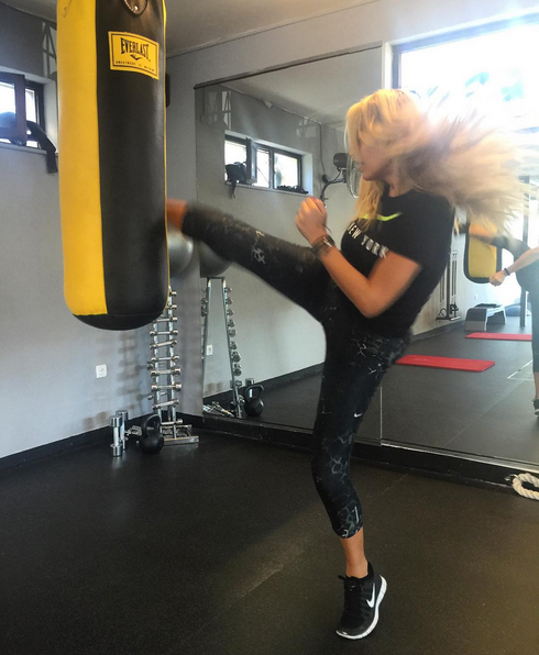 Την σκληρή γυμναστική ξεκίνησε η παρουσιάστρια, Κωνσταντίνα Σπυροπούλου, όπως φαίνεται και στις φωτογραφίες που ανέβασε η ίδια στον προσωπικό της λογαριασμό στο Instagram. Το «μενού» της γυμναστικής περιελάμβανε κλωτσιές σε σάκο του μποξ και τραμπολίνο, ενώ δεν έλειπε το χαμόγελο από το πρόσωπο της.