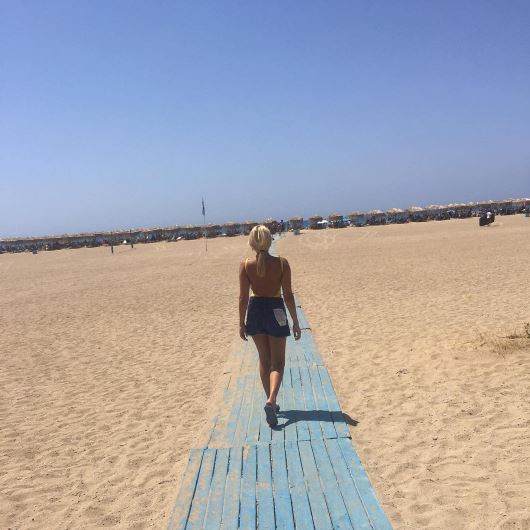 Η όμορφη παρουσιάστρια δημοσίευσε μια φωτογραφία της στον προσωπικό της λογαριασμό στο Ιnstagram, στην οποία περπατάει στην αμμουδιά μιας μαγευτικής παραλίας, φορώντας το ολόσωμο μαγιό της και ένα κοντό σορτσάκι.