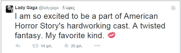 Όπως ανακοίνωσε η ίδια η τραγουδίστρια στο Twitter, το προσεχές φθινόπωρο θα πλαισιώσει το καστ της δημοφιλούς σειράς American Horror Story.