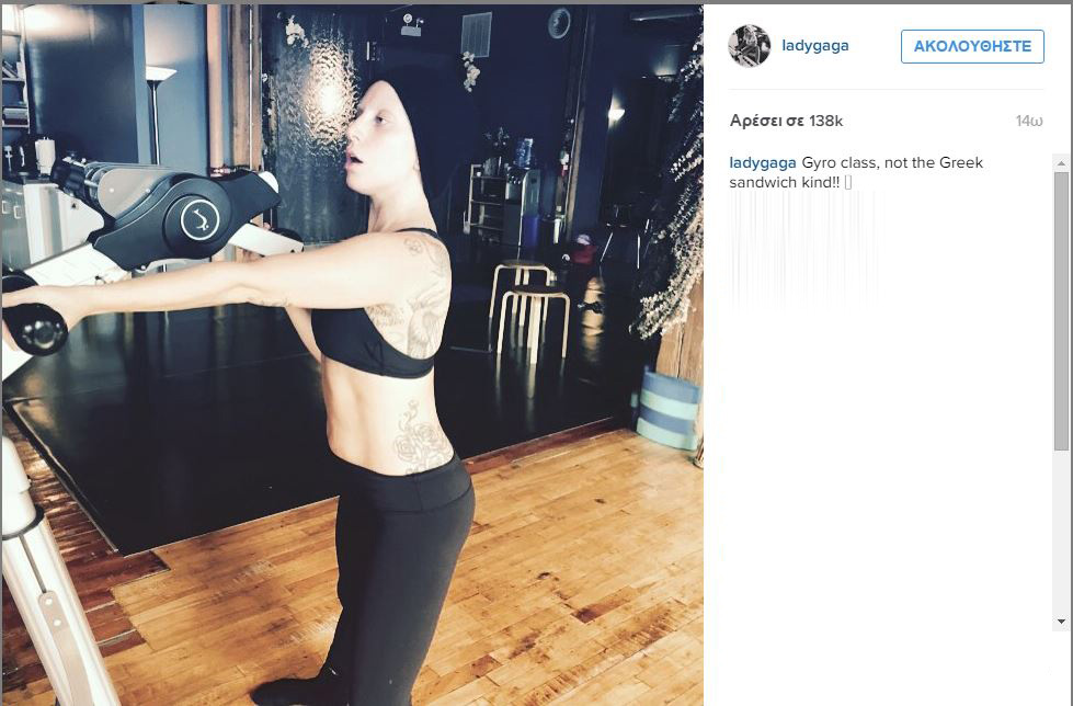 Με αθλητική εμφάνιση μπροστά στο μηχάνημα του Gyrotonic, η Lady Gaga, σκέφτεται… πιτόγυρο!