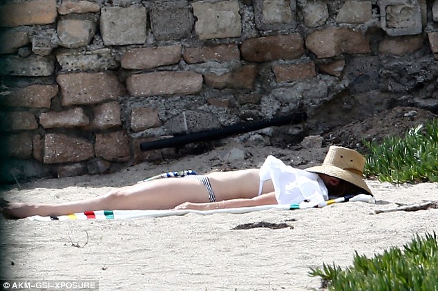 Η 30χρονη καλλιτέχνιδα φόρεσε το vintage μπικίνι της και απόλαυσε την ηλιοθεραπεία, αγνοώντας τα φλας που άστραφταν γύρω της.