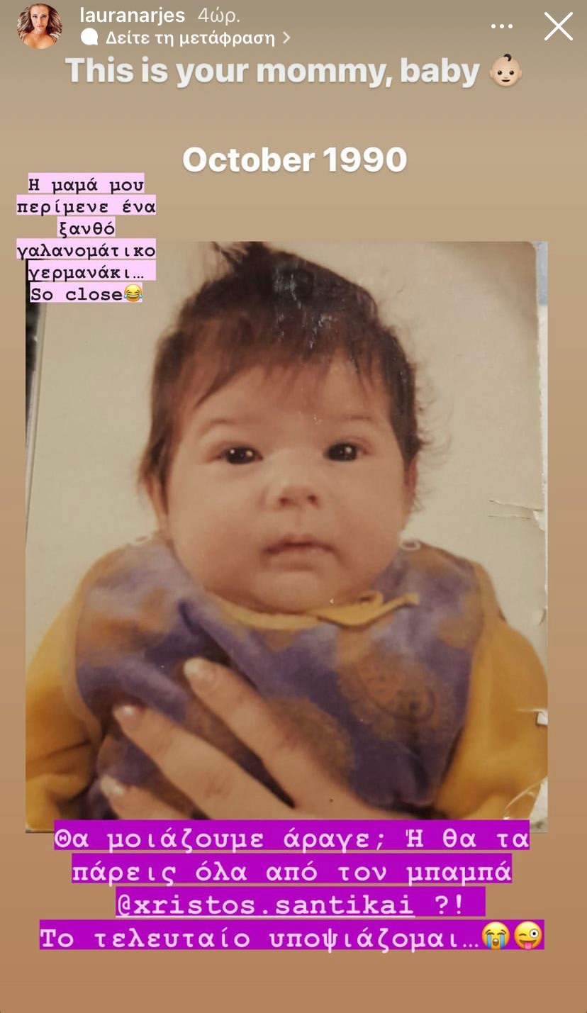 Την Τετάρτη η Λάουρα Νάργες ανέβασε στον προσωπικό της λογαριασμό στο Instagram μια φωτογραφία της από όταν ήταν μωρό, τον Οκτώβριο του 1990.