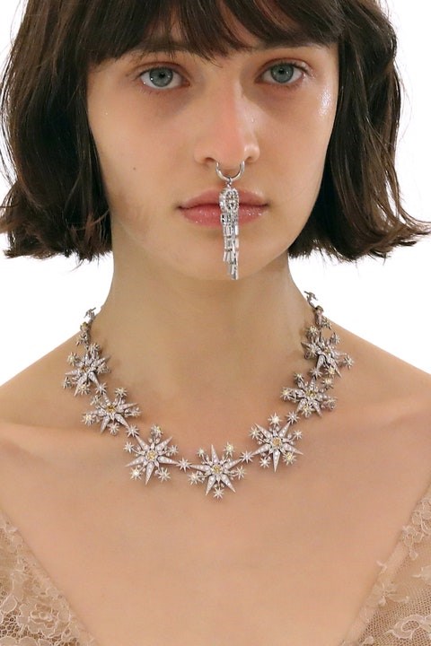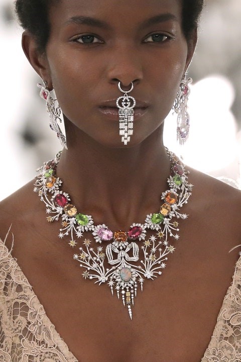 Οι Gucci και Chanel παρουσίασαν για τις resort 2022 συλλογές τους, μικρά κοσμήματα για το πρόσωπο, με το λογότυπο GG να κρέμεται σε ένα septum (aka το σκουλαρίκι που μπαίνει στο διάφραγμα της μύτης) με έναν εντυπωσιακό συνδυασμό από κρυστάλλους για την Gucci, και ένα CC προσαρμοσμένο σε ένα μικρό σκουλαρίκι για το κάτω χείλος για την Chanel.Φυσικά, και τα δύο δεν απαιτούν να κάνουμε πραγματικό piercing, αλλά προσαρμόζονται πανεύκολα στη μύτη ή τα χείλη αντίστοιχα. Η Virginie Viard δήλωσε μάλιστα πως η αρχική έμπνευση για το lip ring στο show της Chanel, προέρχεται από αγαπημένο μοντέλο του Karl Lagerfeld, Stella Tennant που ήταν διάσημη για το septum piercing που είχε.