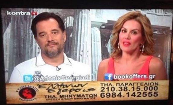 Μια φωτογραφία από την εκπομπή στην οποία βρέθηκε μαζί με τον σύζυγό της Άδωνι Γεωργιάδη ανέβασε στον λογαριασμό της στο Instagram η Ευγενία Μανωλίδου.