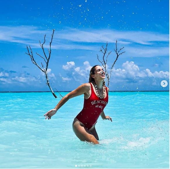 Έτσι δημοσίευσε φωτογραφίες της με ολόσωμο κόκκινο μαγιό αλά Πάμελα Άντερσον στη θρυλική σειρά Baywatch.