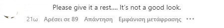 «Σε παρακαλώ, παράτα τα! Δεν είναι ωραία εμφάνιση!» ήταν τα λόγια ενός ακόμη follower στην ανάρτησή της.