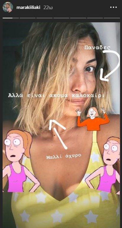 Το πρόσωπό της με τις ατέλειές του παρουσιάζει σε εικόνες που ανήρτησε μέσω insta stories η Μαρία Ηλιάκη.