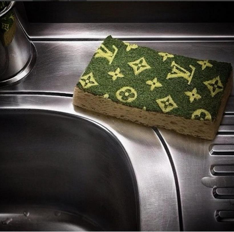 Ένα σφουγγαράκι Louis Vuitton πάνω σε έναν νεροχύτη δείχνει ότι κάποια πλένει τα πιάτα της με ακριβό γούστο!