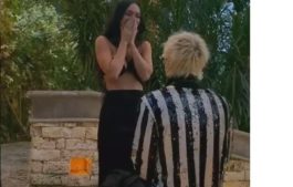 Η ηθοποιός μοιράστηκε ένα βίντεο στον λογαριασμό της στο Instagram, στο οποίο φαίνεται ο μουσικός να γονατίζει μπροστά της και να της κάνει πρόταση γάμου.