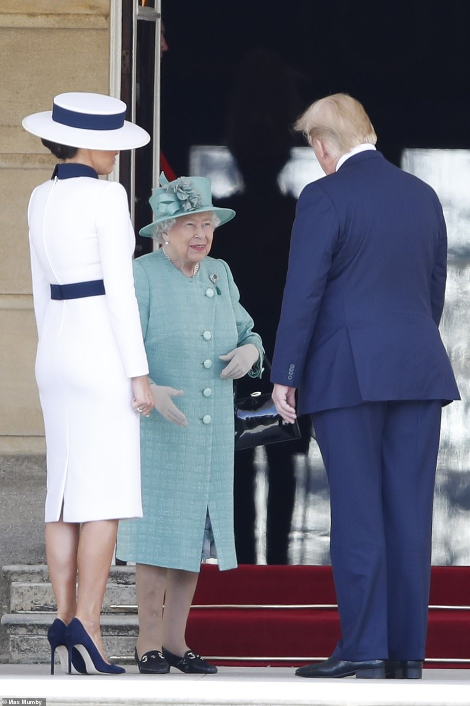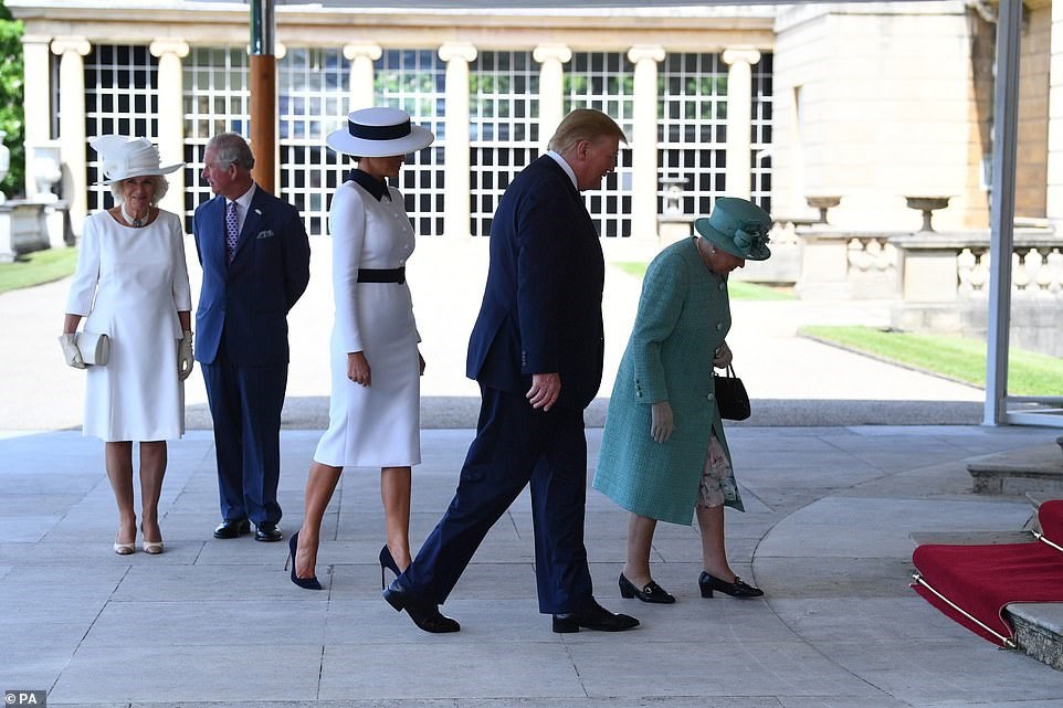 Με ένα σύνολο που θύμιζε πολύ το στυλ της αείμνηστης πριγκίπισσας Νταϊάνα πέρασε το κατώφλι των Ανακτόρων του Μπάκιγχαμ η Πρώτη Κυρία των ΗΠΑ Μελάνια Τραμπ, πρώτη ημέρα της τριήμερης περιοδείας του συζύγου της στο Ηνωμένο Βασίλειο.