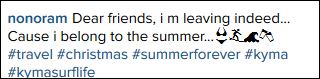 «Αγαπητοί φίλοι, όντως φεύγω. Γιατί ανήκω στο καλοκαίρι», ήταν το σχόλιο της.