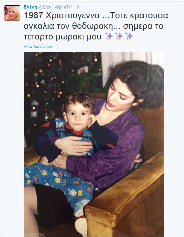 “1987 Χριστούγεννα… Τότε κρατούσα αγκαλιά τον Θοδωράκη. Σήμερα το τέταρτο μωράκι μου” έγραψε.