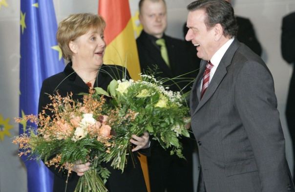 Η φωτογραφία αυτή είναι τραβηγμένη το 2001. Και αποδεικνύει περίτρανα ότι η μέλλουσα -τότε- Καγκελάριος, αγνοεί εντελώς τον όρο “make up”.Στις 22 Νοεμβρίου 2005 γίνεται Καγκελάριος.