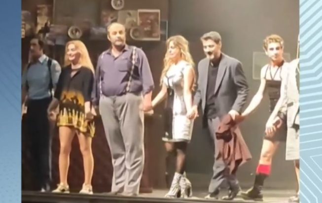 Εικόνες από την παράσταση, έδειξε η εκπομπή «Το Πρωινό». «Αυτός που βλέπετε είναι ο Βασίλης Μπισμπίκης. Με προσθετικά στα πόδια, στην κοιλιά, διότι υποδύεται έναν παχύ άνθρωπο με καραφλίτσα. Δεν γίνονται στο Χόλιγουντ οι μεταμφιέσεις. Είναι όντως ο Βασίλης Μπισμπίκης και πείτε μου αν δεν το αποκαλύπταμε, αν θα γνωρίζατε τον Μπισμπίκη» σχολίασε ο Γιώργος Λιάγκας.