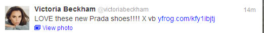 Μπορεί η Ελλάδα και η Ευρώπη μαστίζεται από την οικονομική κρίση, αλλά η Victoria Beckham δεν φαίνεται να ταράζεται… Πριν από λίγο έγραψε στο twitter της: