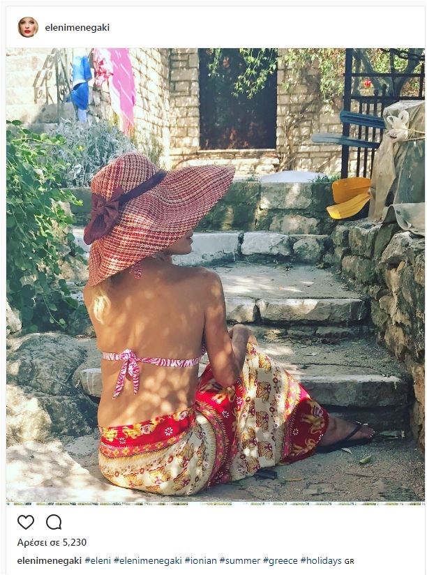 Τις καλοκαιρινές της διακοπές απολαμβάνει η Ελένη Μενεγάκη, μετά το τέλος της εκπομπής της.Η παρουσιάστρια ανέβασε μία νέα φωτογραφία στον προσωπικό της λογαριασμό στο Instagram, ποζάροντας με άκρως καλοκαιρινή διάθεση, φορώντας καπέλο, το μαγιό της και παρεό.Η Ελένη Μενεγάκη «πρόδωσε» πως βρίσκεται σε νησί του Ιονίου.