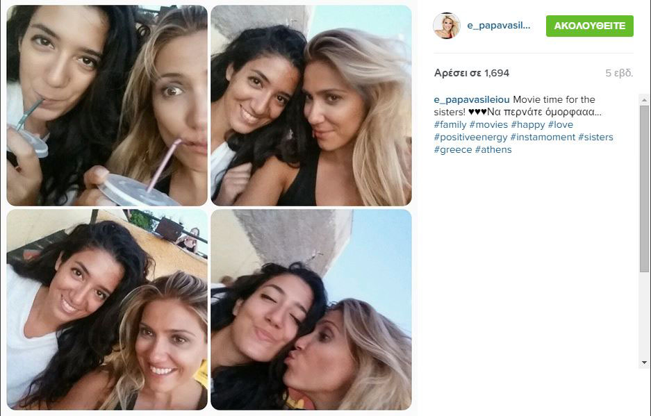 Η όμορφη Έλενα Παπαβασιλείου ποζάρει μαζί με την αδελφή της στο instagram.