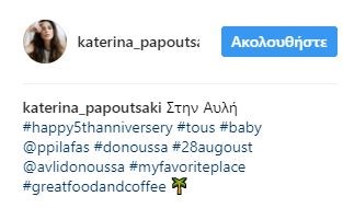 Μια φωτογραφία από τη Δονούσα, μαζί με τον σύζυγό της με τον οποίο γιόρτασαν 5 χρόνια γάμου, ανέβασε στον λογαριασμό της στο Instagram, η ηθοποιός Κατερίνα Παπουτσάκη.