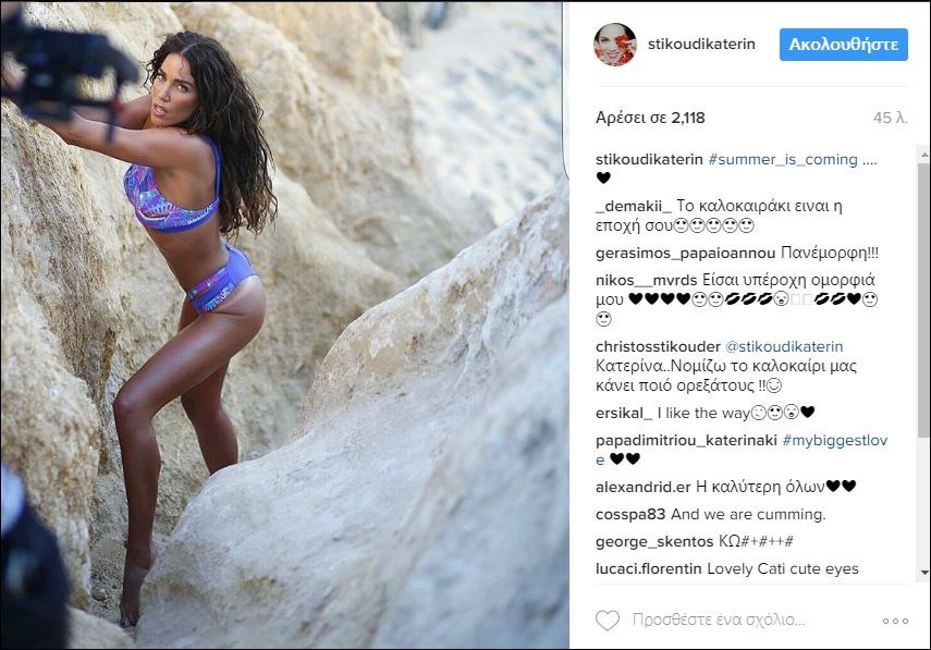 Η Κατερίνα Στικούδη ανέβασε στον προσωπικό της λογαριασμό μία άκρως καλοκαιρινή φωτογραφία, η οποία όπως ήταν αναμενόμενο τράβηξε όλα τα βλέμματα.Η τραγουδίστρια και μοντέλο φοράει το μαγιό της, για τις ανάγκες φωτογράφισης, ενώ η λεζάντα «Summer is coming», συνοδεύει την φωτογραφία της.