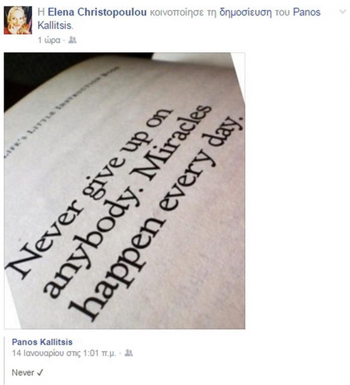 Η σύζυγός του κομμωτή Πάνου Καλλίτση, Έλενα Χριστοπούλου, λίγες μέρες μετά την ενέδρα θανάτου που του έστησαν δημοσίευσε μία συγκινητική φωτογραφία στο Facebook.