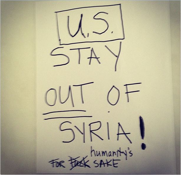 “Αμερική, μείνε έξω από τη Συρία” σχολίασε η βασίλισσα της ποπ μουσικής μέσω της ακόλουθης φωτογραφίας.