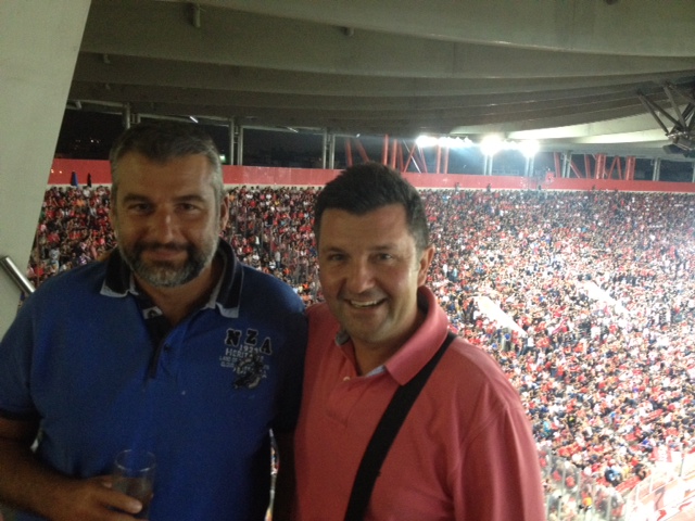 Πετάχτηκε από το κάθισμά του για να δει σε “replay” το δεύτερο τέρμα των Γερμανών, μη μπορώντας να “χωνέψει” ότι αμέσως μετά την ισοφάριση “φάγαμε” γκολ και χάσαμε το ματς! Σε όλη τη διάρκεια του ματς το κινητό του είχε πάρει “φωτιά”…