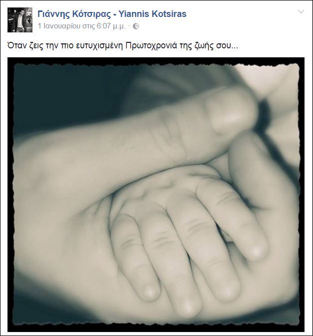 Την πιο ευτυχισμένη Πρωτοχρονιά της ζωής του έζησε ο Γιάννης Κότσιρας, όπως έγραψε ο ίδιος στον λογαριασμό του στο Facebook.