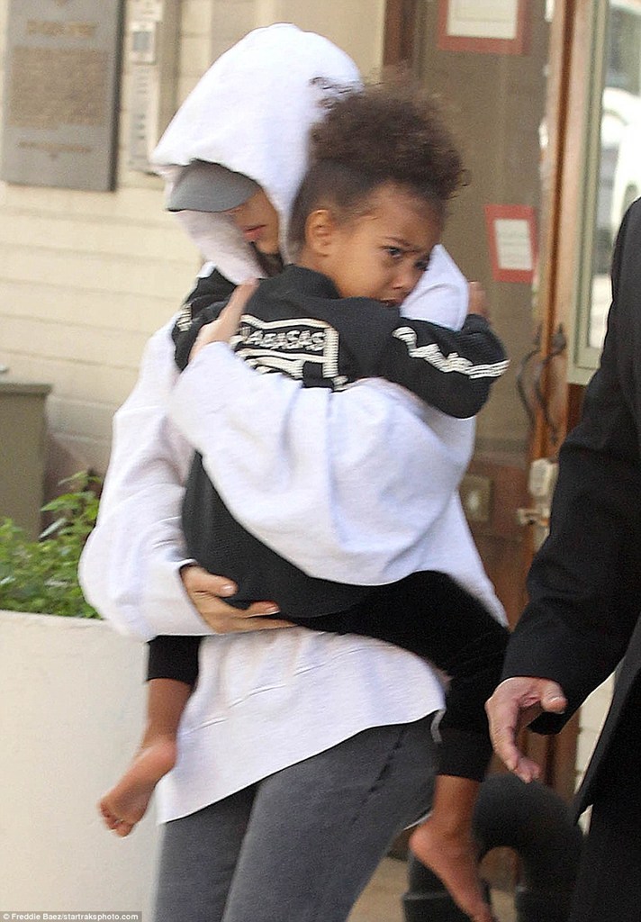 Ο φωτογραφικός φακός συνέλαβε τη σελέμπριτι την ώρα που έβγαινε απο το διαμέρισμά της στη Νέα Υόρκη, έχοντας αγκαλιά την κόρη της Νόρθ, που φαίνεται να είναι αναστατωμένη απο την κινητοποίηση των παπαράτσι έξω απο το σπίτι της οικογένειας. Η Κιμ ήταν πρόχειρα ντυμένη και είχε καλύψει το πρόσωπό της φορώντας την κουκούλα του φούτερ της. Προσπαθώντας να αποφύγει τα φλας μπήκε γρήγορα στο αυτοκίνητο που τους περίμενε.