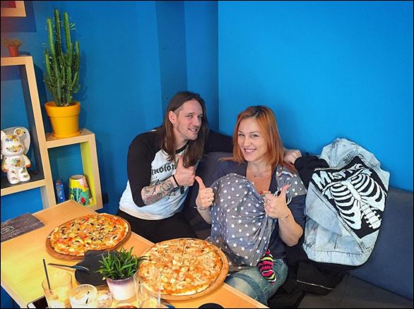 Η χαμογελαστή οικογένεια γιόρτασε την πρώτη τους έξοδο, τρώγοντας πίτσα.