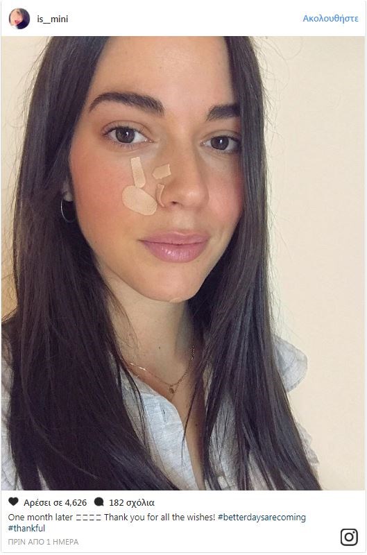 Ένα σοκαριστικό ατύχημα είχε πριν από ένα μήνα, η Ισμήνη Νταφοπούλου λίγο καιρό μετά τον γάμο της. Η πρώην Σταρ Ελλάς βρισκόταν στα γυρίσματα μιας επαγγελματικής φωτογράφησης όταν ένας μεγαλόσωμος σκύλος της επιτέθηκε τραυματίζοντάς την στο πρόσωπο και το λαιμό.«Έχασα προσωρινά και τόσο απροσδόκητα το όπλο της εργασίας μου, το πρόσωπό μου, την υγιή μου εμφάνιση, τη δουλειά μου, την αυτοπεποίθησή μου. Έπρεπε πια να “κρύβομαι” για να περπατήσω στο δρόμο χωρίς να είμαι δακτυλοδεικτούμενη. Όλα έγιναν τόσο ξαφνικά…», είχε δηλώσει λίγες μέρες μετά το ατύχημά της.Πριν από λίγες ημέρες, η Ισμήνη Νταφοπούλου δημοσίευσε την πρώτη της φωτογραφία μετά το ατυχές συμβάν στον προσωπικό της λογαριασμό στο Instagram, γράφοντας: «Ένας μήνας μετά… Σας ευχαριστώ για τις ευχές σας!».Δείτε την ανάρτηση: