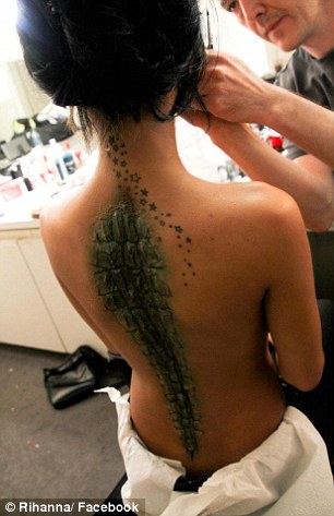 Για τις ανάγκες του βιντεοκλίπ “Where have you been” η Rihanna -εκτος των άλλων- μεταμορφώθηκε σε… αλιγάτορα! Στη σελίδα της στο facebook παρουσίασε φωτογραφίες απο το making of και το καταπληκτικό μακιγιάζ στο σώμα της που παραπέμπτει στις φολίδες του δέρματος του κροκοδείλου….