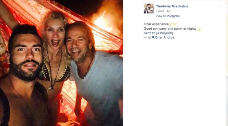 Η γνωστή παρουσιάστρια φωτογραφήθηκε με τον Ματέο και τον αδερφό της Θοδωρή Μισόκαλο, ο οποίος δημοσίευσε στον προσωπικό του λογαριασμό στο instagram, φωτογραφία από την βραδινή τους εξόρμηση, πιθανότατα στην παραλία, καθώς φορούν μαγιό, ενώ στο βάθος φαίνεται πως έχουν ανάψει και μία φωτιά.