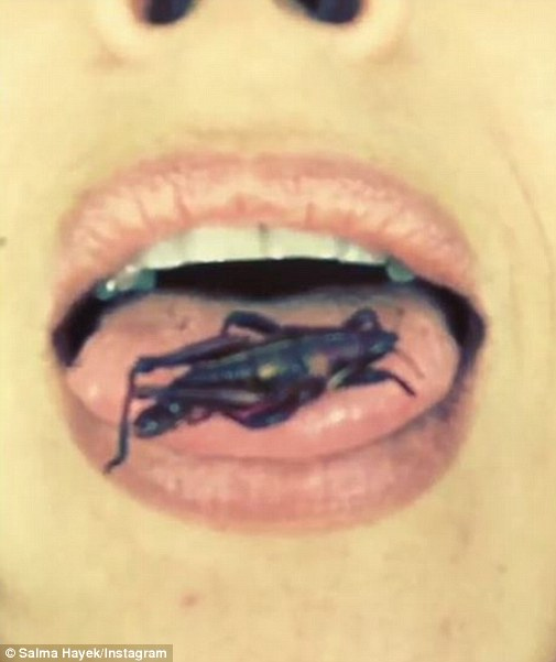 Ένα βίντεο στο οποίο εμφανίζεται να τρώει ένα…τριζόνι ανέβασε στο Instagram, η Σάλμα Χάγιεκ.