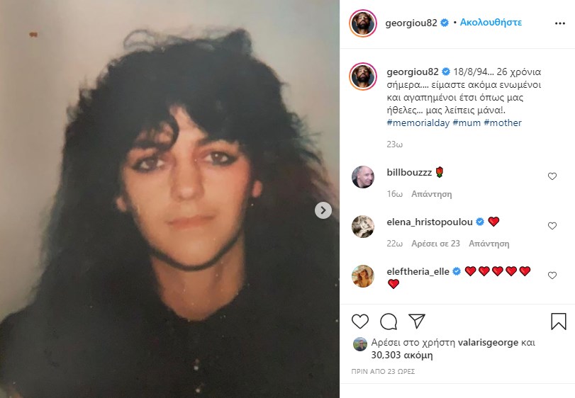 Ο ηθοποιός της σειράς “8 Λέξεις” δημοσίευσε μια φωτογραφία και έγραψε στη λεζάντα “18/8/94…26 χρόνια σήμερα…είμαστε ακόμα ενωμένοι και αγαπημένοι έτσι όπως μας ήθελες… μας λείπεις μάνα”.
