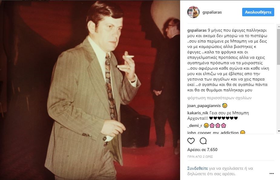 Ο Γιάννης Σπαλιάρας κατά τη διάρκεια των γυρισμάτων του Survivor είχε αποκαλύψει πως ο πατέρας του είχε πεθάνει πριν από μερικούς μήνες. Ο πρώην παίκτης του παιχνιδιού επιβίωσης μέσω του λογαριασμού του στο instagram έκανε μια συγκινητική αφιέρωση στον πολυαγαπημένο του πατέρα.