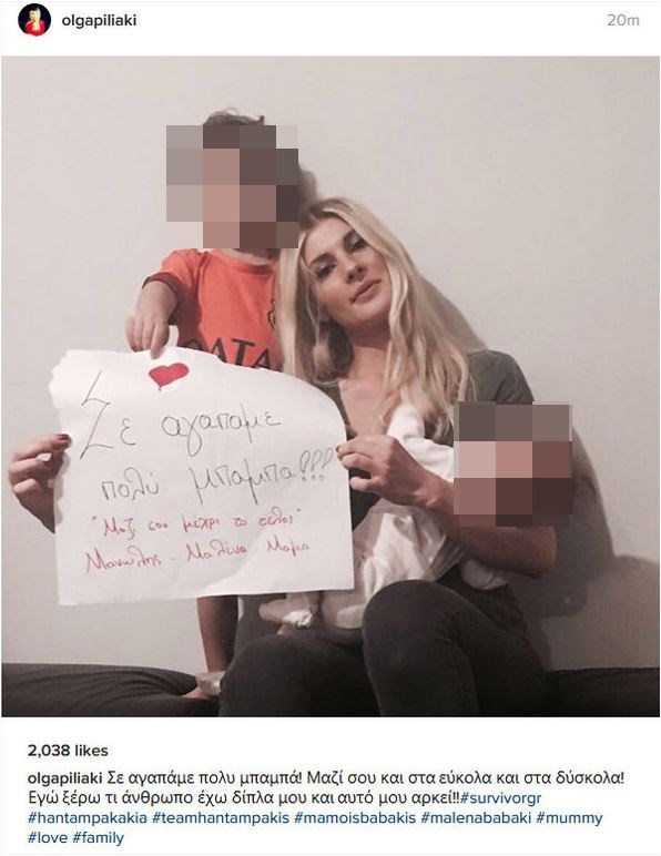 Θέση στον «πόλεμο» που δέχεται μέσω των social media ο σύζυγό της, Στέλιος Χανταμπάκης, πήρε η Όλγα Πηλιάκη, ανεβάζοντας μία φωτογραφία στον προσωπικό της λογαριασμό στο Instagram.Η Όλγα Πηλιάκη στηρίζει τον σύζυγό της και εξέφρασε δημόσια την συμπαράστασή της προς το πρόσωπό του.Η σύζυγος του παίκτη του Survivor, ανέβασε μία φωτογραφία με τα δύο τους παιδιά, ενώ η λεζάντα που συνόδευε την ανάρτηση έγραφε «Σε αγαπάμε πολύ μπαμπά! Μαζί σου και στα εύκολα και στα δύσκολα! Εγώ ξέρω τι άνθρωπο έχω δίπλα μου και αυτό μου αρκεί!!»Δείτε την ανάρτηση: