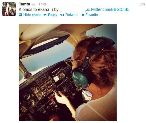 ”Και όμως το έκανα”, γράφει στο twitter της η Τάμτα, ανεβάζοντας μία φωτογραφία μέσα από ένα αεροπλάνο, το οποίο πιλοτάρει η ίδια!