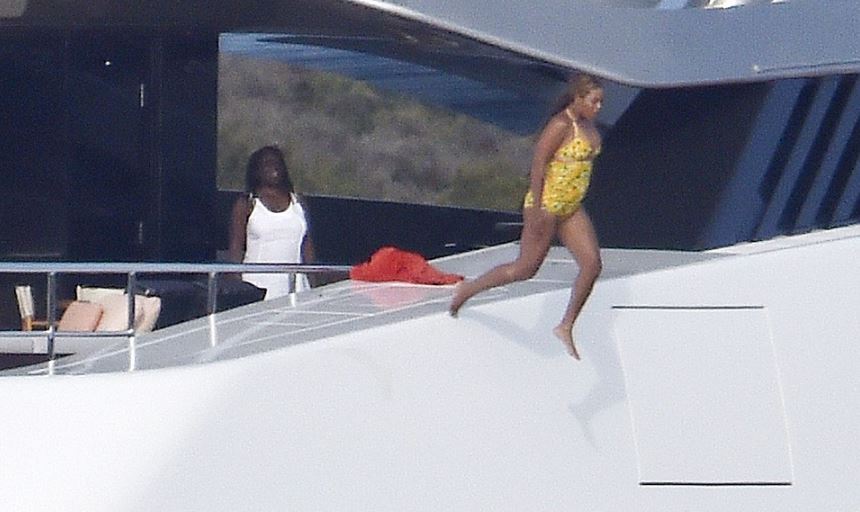 Τα φλας πήραν «φωτιά» όταν εντόπισαν τη Μπιγιονσέ να πηδάει από το πλωτό ενοικιαζόμενο «παλάτι» της στη θάλασσα.
