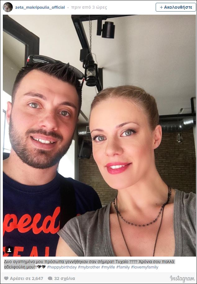 «Δυο αγαπημένα μου πρόσωπα γεννήθηκαν σαν σήμερα!! Τυχαίο;;; Χρόνια σου πολλά αδελφούλη μου», έγραψε στη λεζάντα που συνόδευε τη φωτογραφία του αδελφού της.