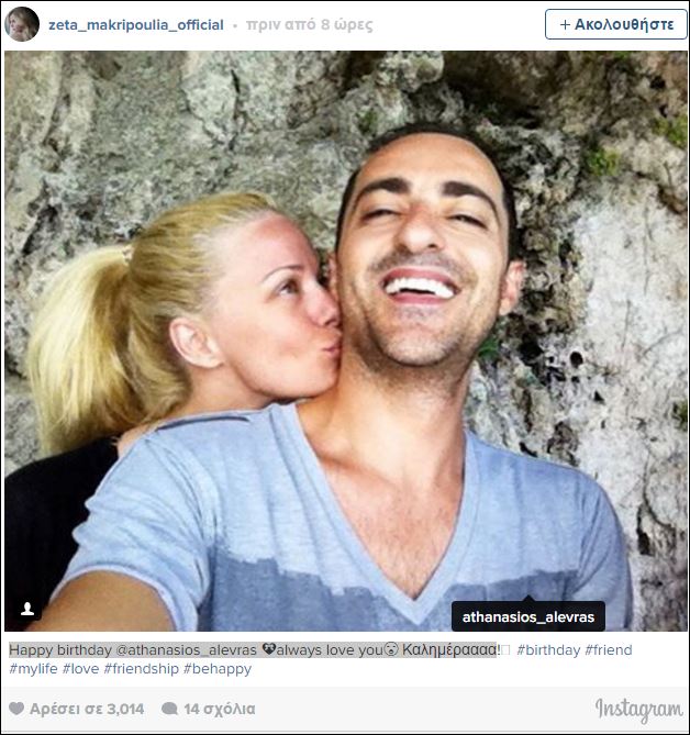 Εκτός όμως από τον αδελφό της η όμορφη ηθοποιός – παρουσιάστρια σήμερα γιορτάζει και τα γενέθλια του αγαπημένου της φίλου, Θανάση Αλευρά.