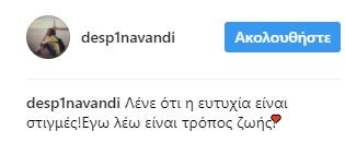 «Λένε ότι η ευτυχία είναι στιγμές! Εγώ λέω είναι τρόπος ζωής» έγραψε χαρακτηριστικά η τραγουδίστρια.