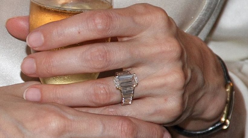 Το πανάκριβο δαχτυλίδι έχει πάνω του ένα διαμάντι 16 καρατίων σε τετράγωνο σχήμα και φτιάχτηκε ειδικά για να ταιριάζει στα μακριά δάκτυλα της Αντζελίνα. Την κατασκευή του ανέλαβε ο διάσημος κοσμηματοπώλης του Μπέβερλι Χιλς Ρόμπερτ Πρόκοπ, ο οποίος το 2010 δημιούργησε ολόκληρη συλλογή με το όνομα της Τζολί. τα έσοδα της οποίας πήγαν στο ίδρυμα για παιδιά που ίδρυσε η ηθοποιός το 2006.