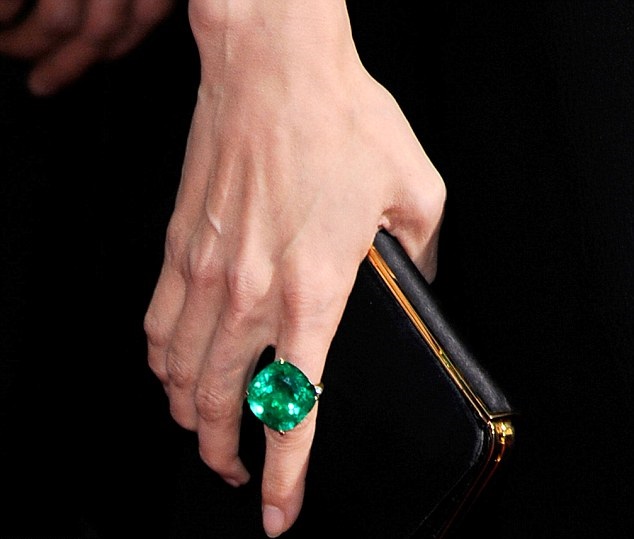 Τα σκουλαρίκια αυτά είναι από κολομβιανά σμαράγδια, 115 καρατίων και κοστίζουν 2,5 εκατ. δολάρια. Το ασορτί του δαχτυλίδι είναι 65 καρατίων και η τιμή του φτάνει το 1 εκατ. δολάρια.