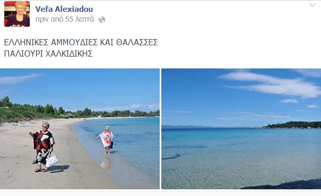 Με μία ανάρτησή της στην προσωπική της σελίδα στο facebook, η Βέφα Αλεξιάδου αναδεικνύει τις καλοκαιρινές ομορφιές της χώρας μας.