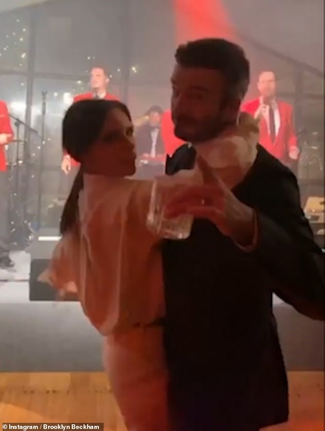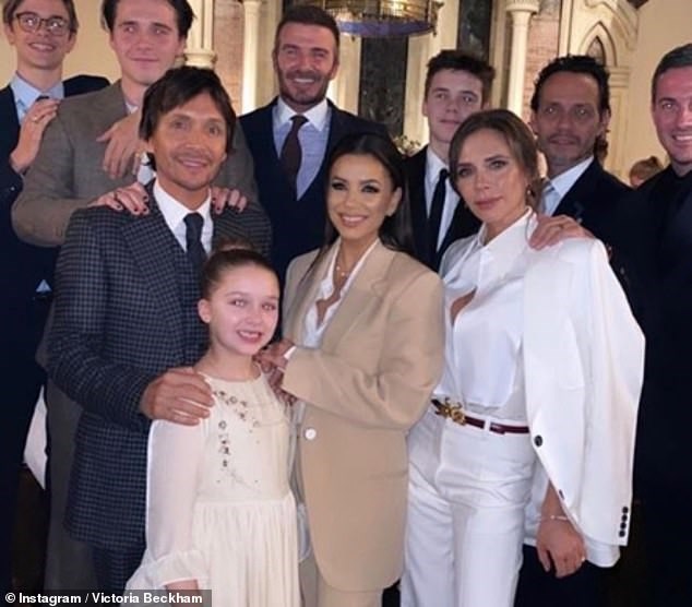 Σε μια σπάνια δημόσια εκδήλωση έρωτα, η Βικτόρια Μπέκαμ κυριολεκτικά κρεμάστηκε πάνω στον σύζυγό της Ντέιβιντ τραγουδώντας και χορεύοντας μαζί του στο πάρτι της βάφτισης των δύο παιδιών τους, Κρουζ και Χάρπερ.